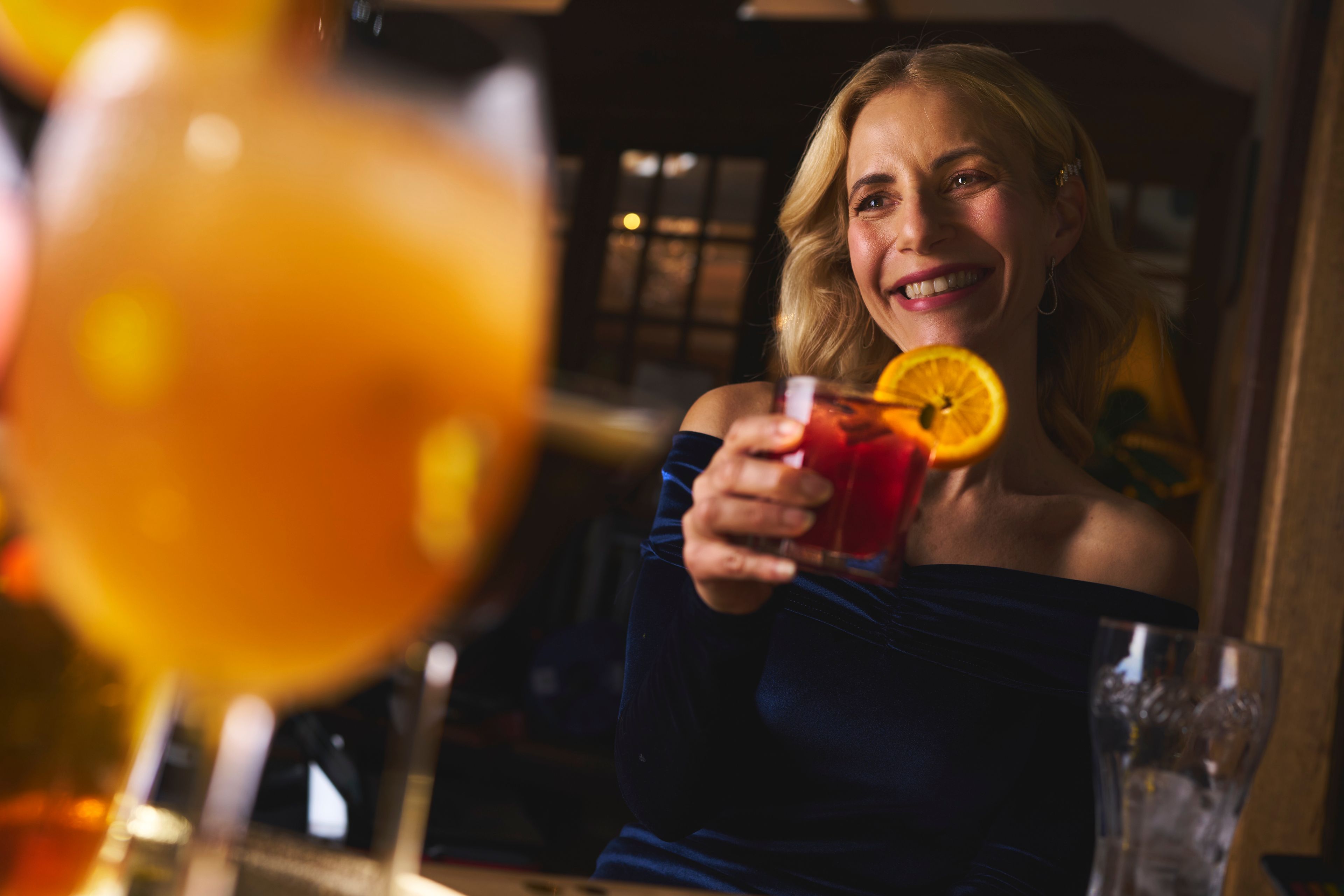 Elegant yet mischievous, just like her name. Smirnoff Black Vodka and Fentimans Mandarin & Seville Orange Jigger blend in a sharp-sweet swirl of citrus sophistication, with a dash of bitters and a gentle squeeze of lime. This striking beauty is finished with an orange wheel atop the glass.