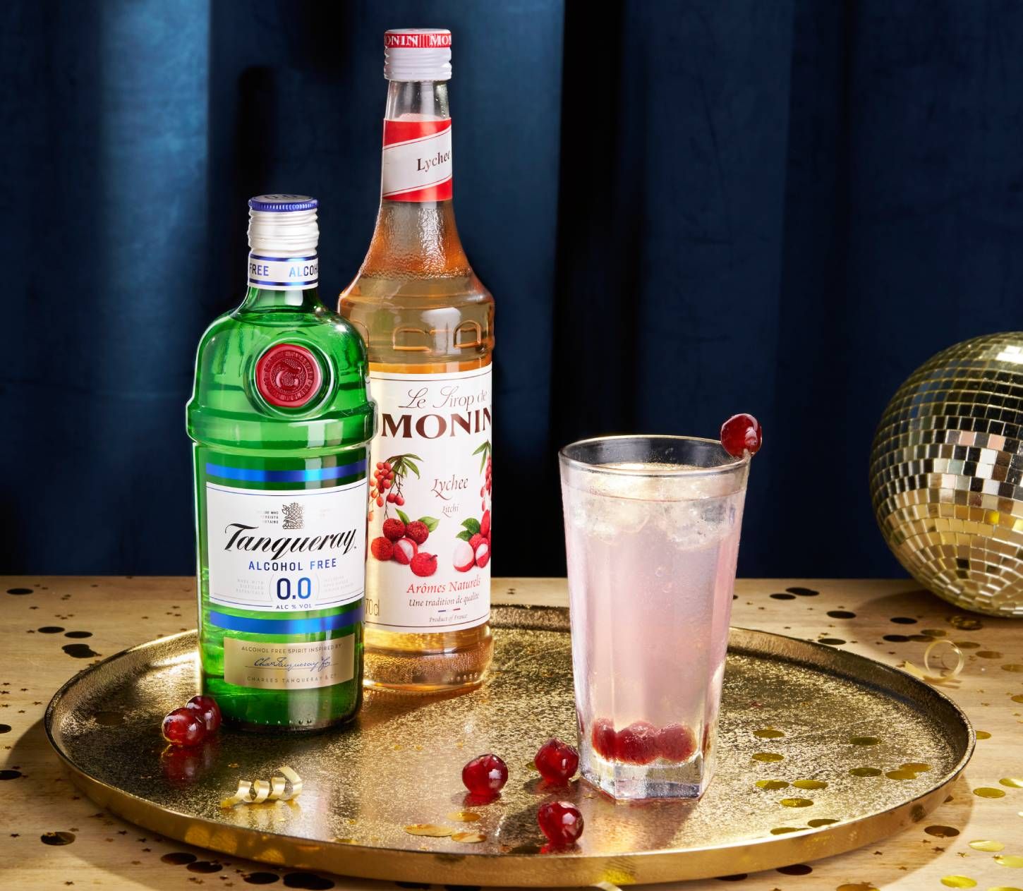 A spirit-free serve with serious style. Tanqueray 0.0% meets Monin Lychee Syrup and freshly-squeezed lime juice, topped with soda for a refreshingly elegant tipple that won’t leave you tongue-tied.